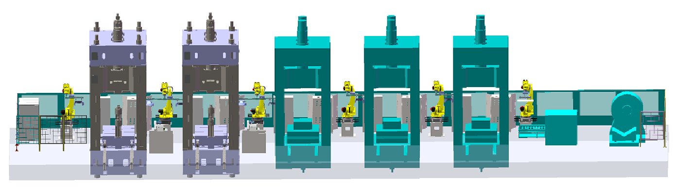 生產(chǎn)線上主要包括的有:搬運機器人本體及輔助設(shè)備,機器人用末端抓舉夾具模塊,來料定位整理模塊,在線自動檢測模塊。所做工件的加工從上料到檢測、碼垛全程實現(xiàn)無人化、自動化。