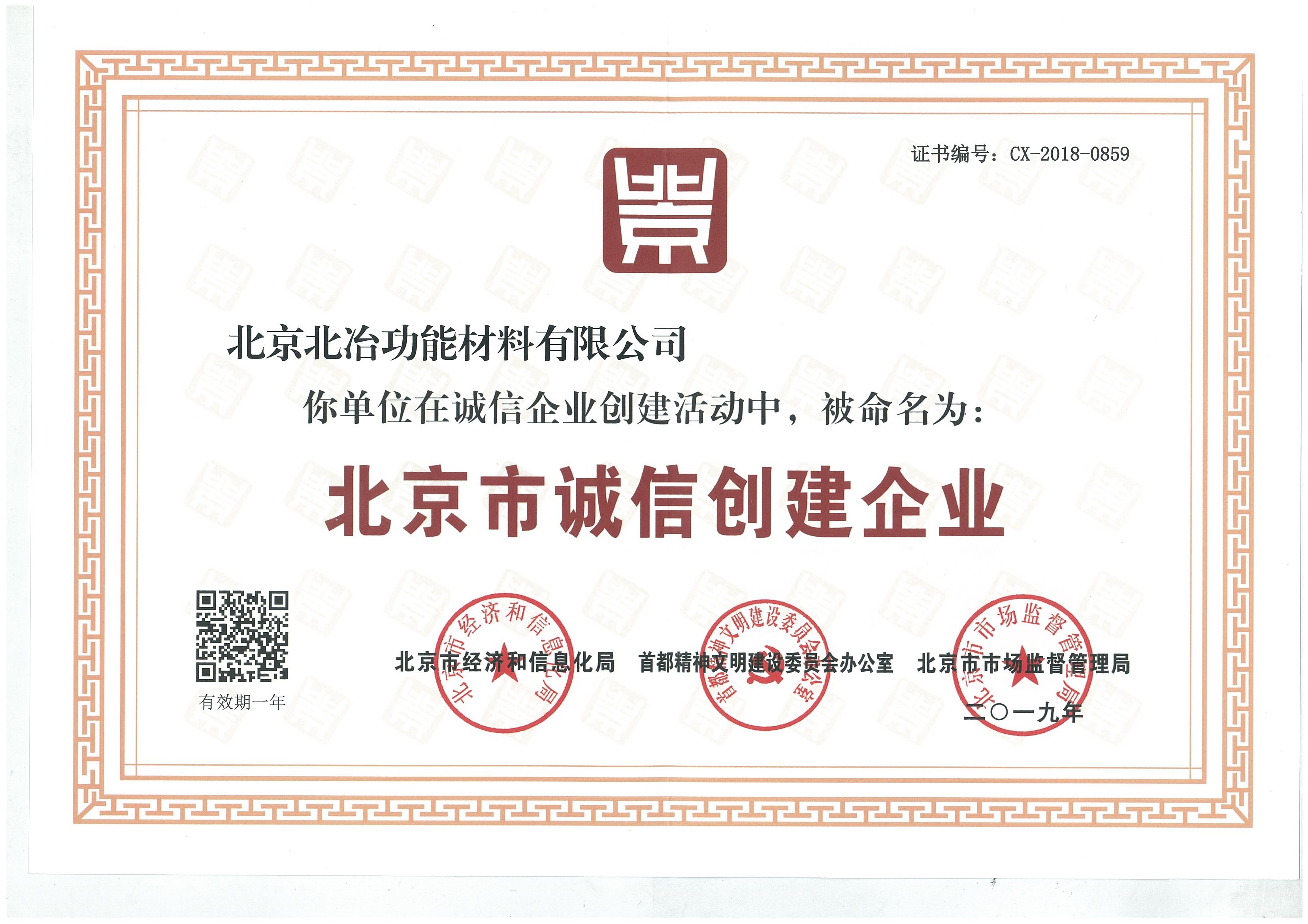 企業(yè)誠信創(chuàng)建證書2019